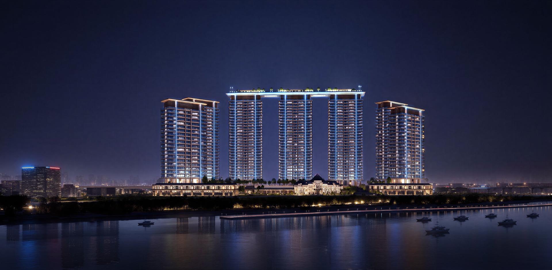 项目位于非洲几内亚科纳克里主城区核心地段,咫尺大西洋,以“西非海景豪宅的品质标杆”为定位,重塑几内亚湾区生活想象。整体规划以经典法式会所为圆心,七栋住宅塔楼呈众星捧月之势环绕布局。社区利用竖向高差,实现“内高外低”的巧妙处理,既抬升了观景视野,又有效隔绝外部喧嚣,演绎全新滨海生活哲学。